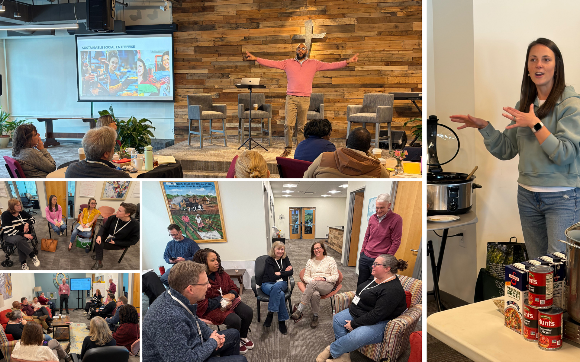 Participants explored the difference between missional enterprises—profit-making businesses that provide needed services in the community while creating space for relationships and faith—and social enterprises—nonprofit organizations that meet community needs while also fostering meaningful connection and opportunities for faith exploration.